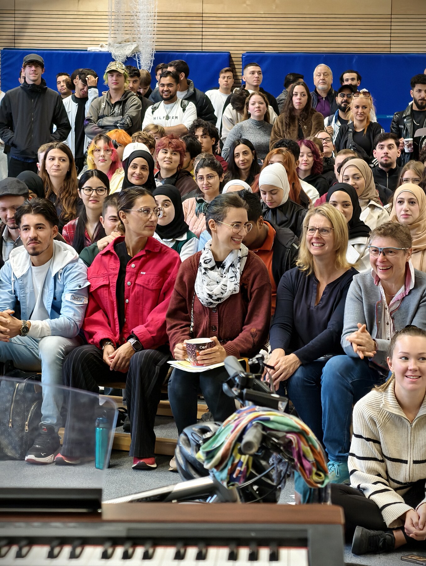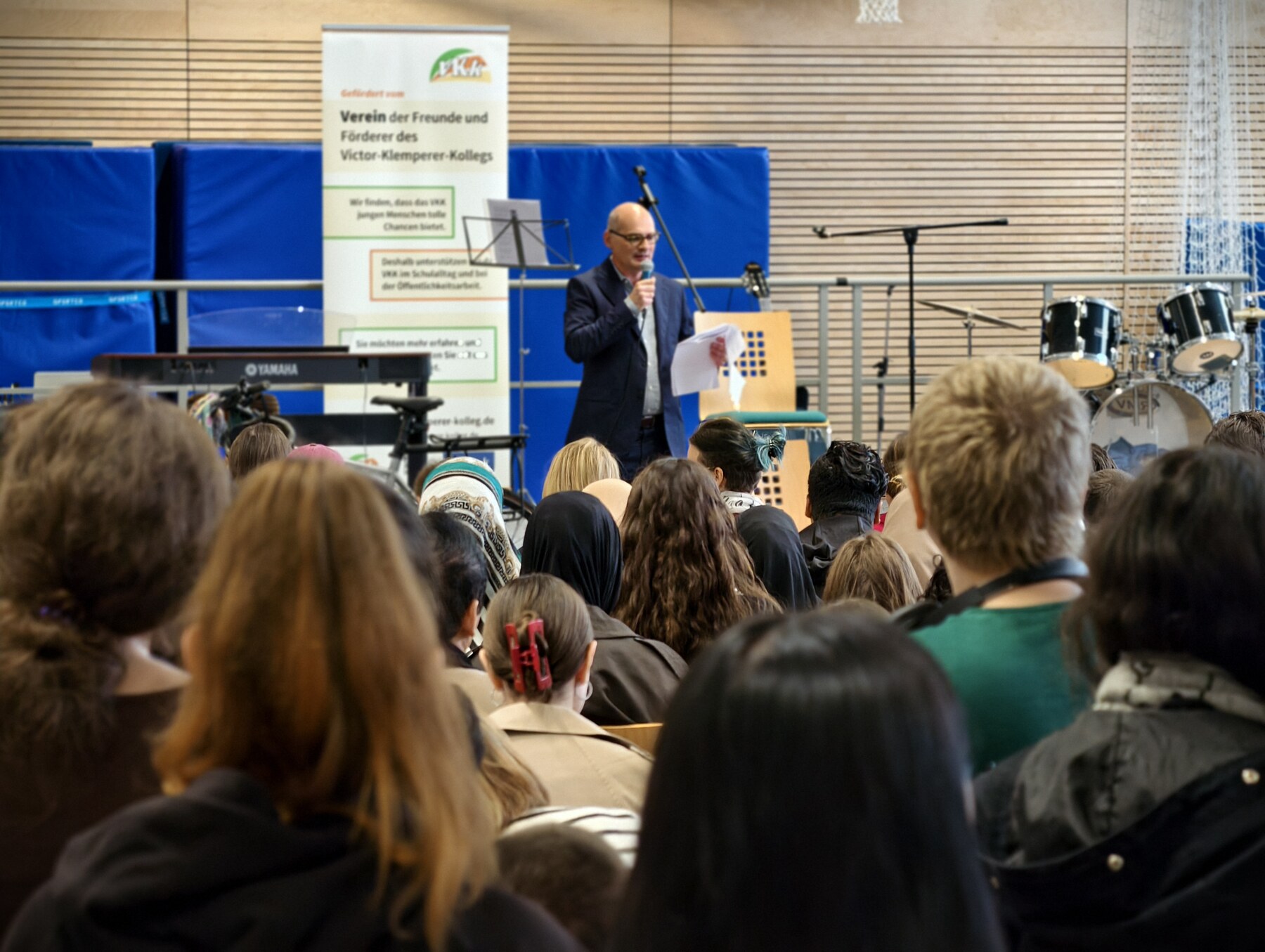 Zum Start ins neue Schuljahr versammelten sich rund 400 Kollegiatinnen und Kollegiaten am 17.09.2025 in der Turnhalle des VKK. Unter dem Motto „Balance halten – Kurs halten“ gab es starke Impulse für Motivation, Gemeinschaft und Zuversicht.